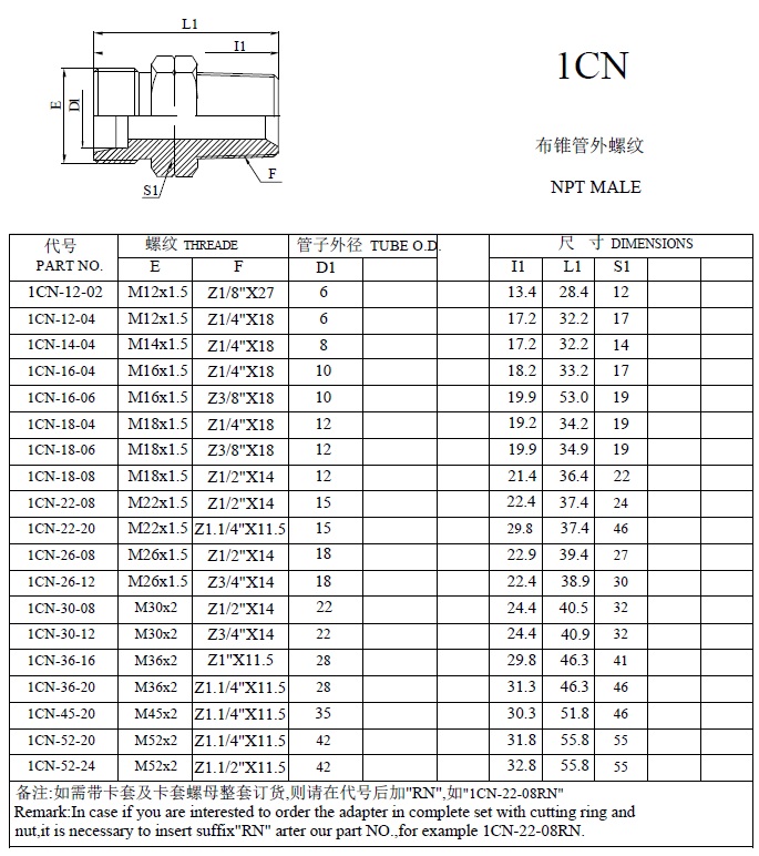 Product name : 24° METRIC MALE/NPT MALE UNION