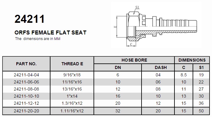 Product name : Hydraulic ORFS FEMALE O-RING SEAL Fitting 24211